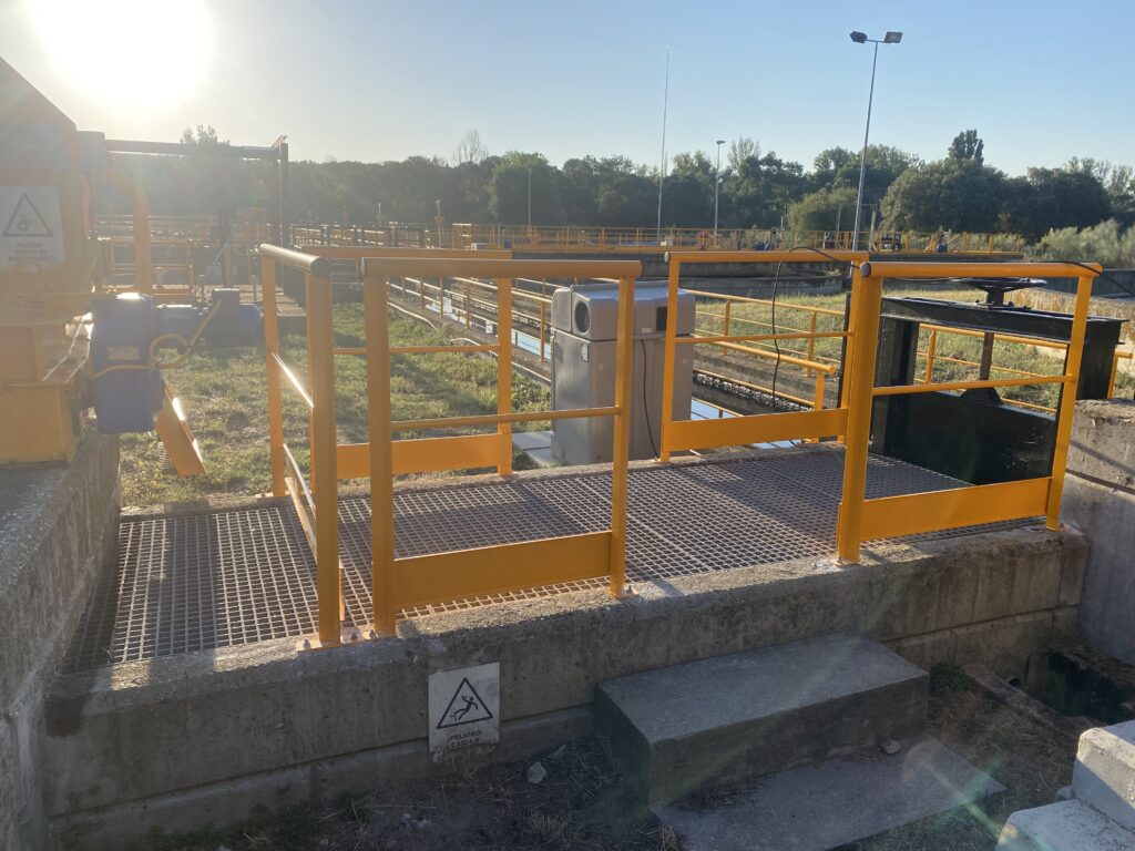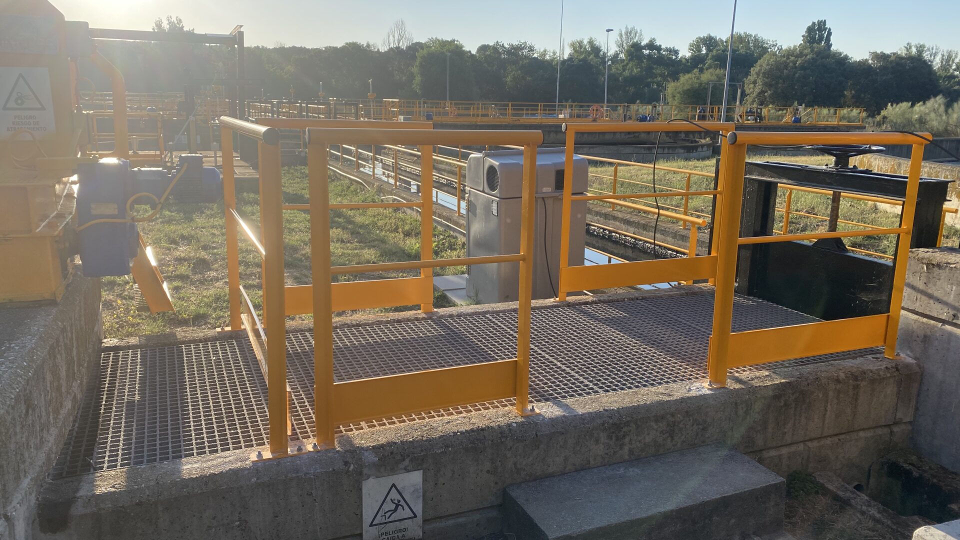 Montaje de barandilla en obra.